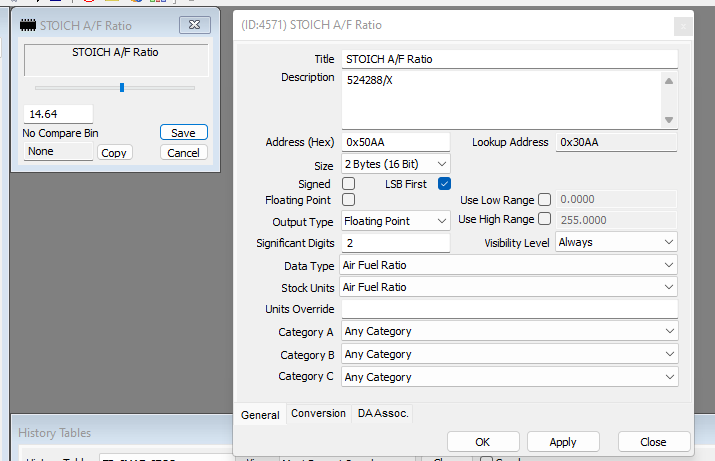 Thanks to wwhite I am adding some parameters to A1C as needed. Setting the Stoich AFR Scalar to 10:1 helped my e85 tune nicely. Please add to your next revision.