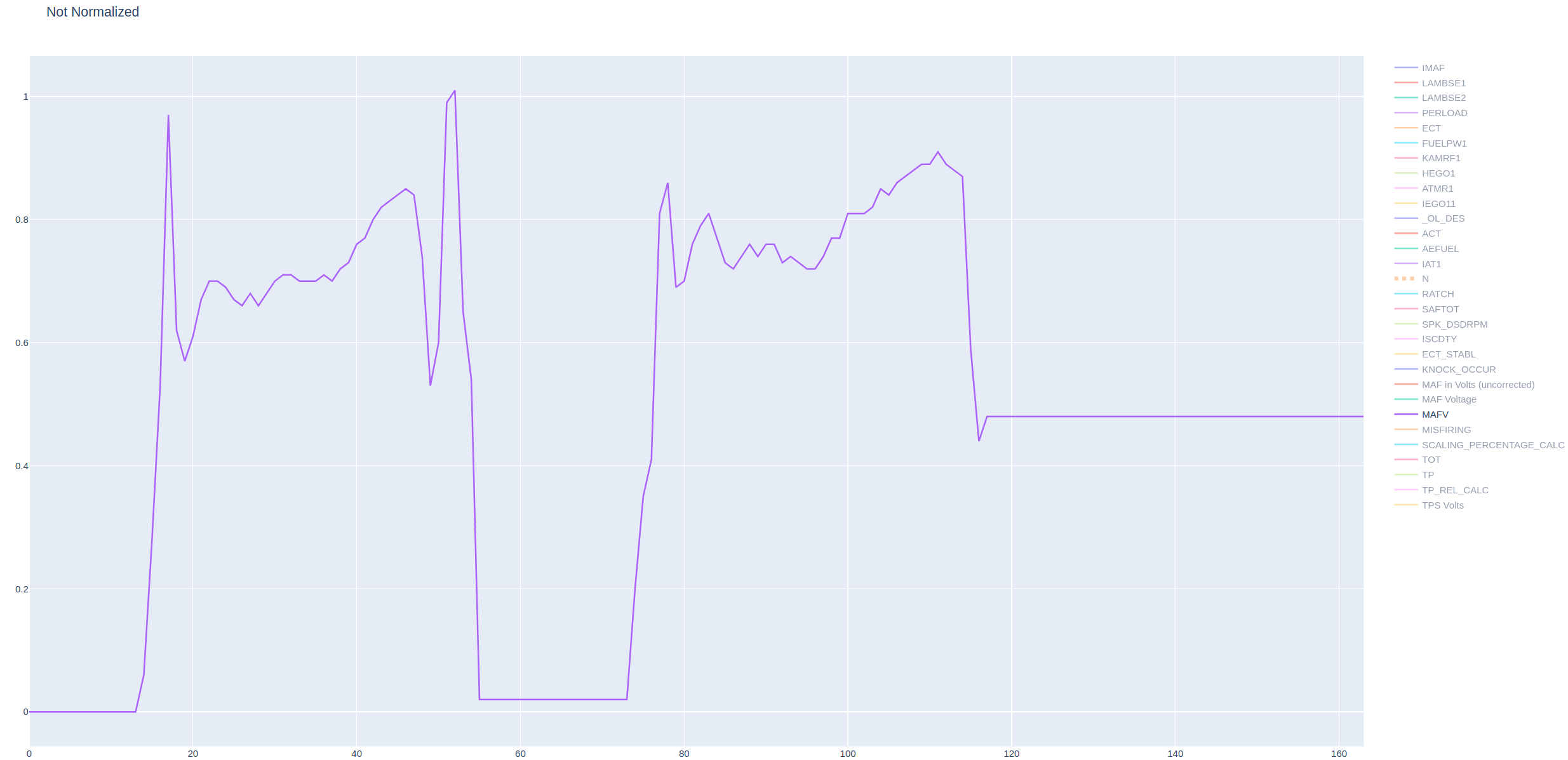 Does this look like a bad MAF signal, or are there circumstances where it makes sense for MAFV to go up while RPM drops?