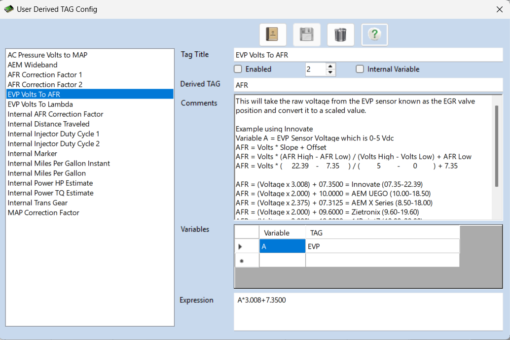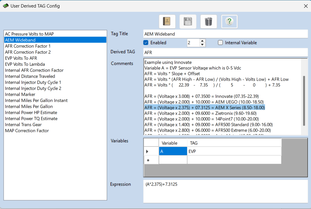 Binary Editor performed an update to Ver. 5.931, my tune files have disappeared, and now the way the wideband is configured in BE has changed, and no longer works. I have read the help/user's manual, and I have entered the information how I think I understand it, and it still will not convert the EVP 0-5V signal to AFR.