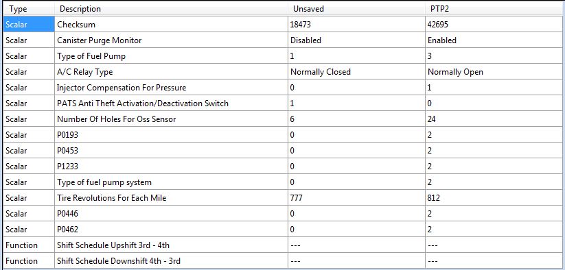 v3 seems better. Seems to stumble a little on startup, but it's not trying to run away like it was. As the car is essentially a 2004 Mustang GT in every way the PCM is concerned about, a stock Mustang GT tune should run it fine, and the PTP2 tune was very lightly touched. I did notice that there were some differences between the original PTP2 tune and the MGZT one, such as the MAF tables. Problem is comparing the two is 'tough' since they're different strategies, so somethings are in different places so a straight compare won't work as you'll get gibberish. I'll poke around the tunes and see what I can find, I don't want to suck up lots of your time. You've already been a huge help.