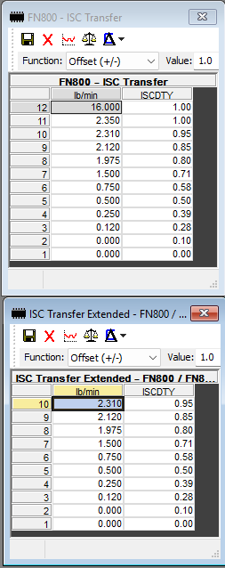 Now ... for the GT40/Cobra Lower intake, I had a look in the stock J4J1 ISCTransfer and there are definitely differences between ISC Duty Cycle and Flowrates in FN8000 between J4J1 and T4M2. Now ... with my throttle plate set at what I think is the minimum the car will idle ... and a DSDRPM of 672 ... ISCDuty checks in at .15 steady (because it is up against the min ISC airflow clip). In the T4M2 ISC transfer, that translates into 0.120 lb/min. If I look at the J4J1 ISC Transfer 0.120 lb/min checks in at ~.35, if my interpolations/flow calculations are correct and I believe they are.