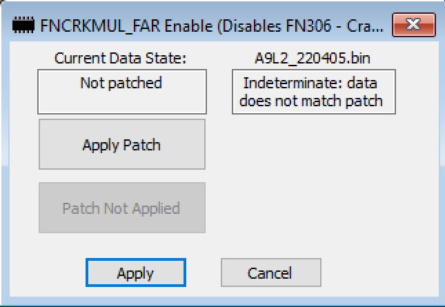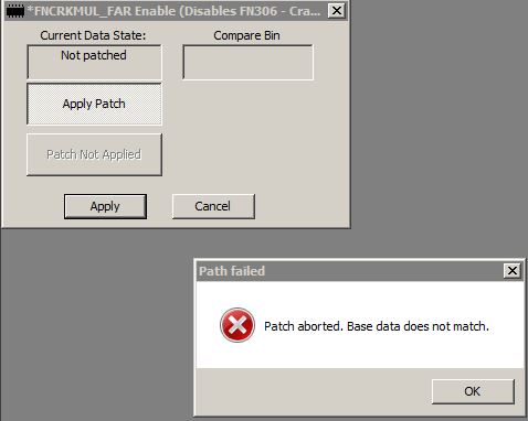 So what I've got working at this point, is simply modifying FN348 and also modifying FN306, which is labeled as being "depreciated." Car runs great, but Mike you may want to take note of the issue described above. I've confirmed the same results on 3 separate computers running TunerPro RT and the currently posted A9L2 bin file.