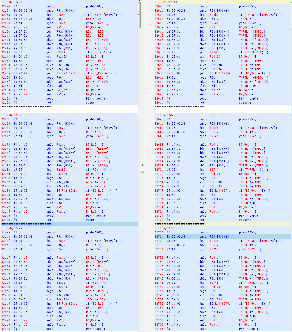 07bc2: a1,ae,54,36        ldw   R36,54ae         TMP2L = FN070C;                  # Function address R36