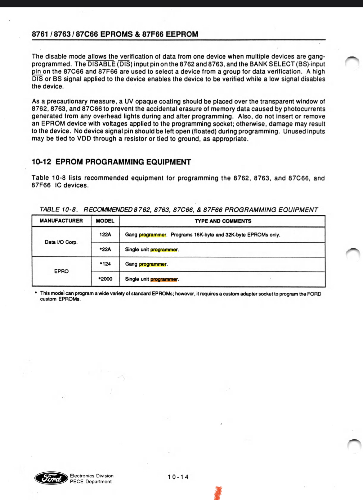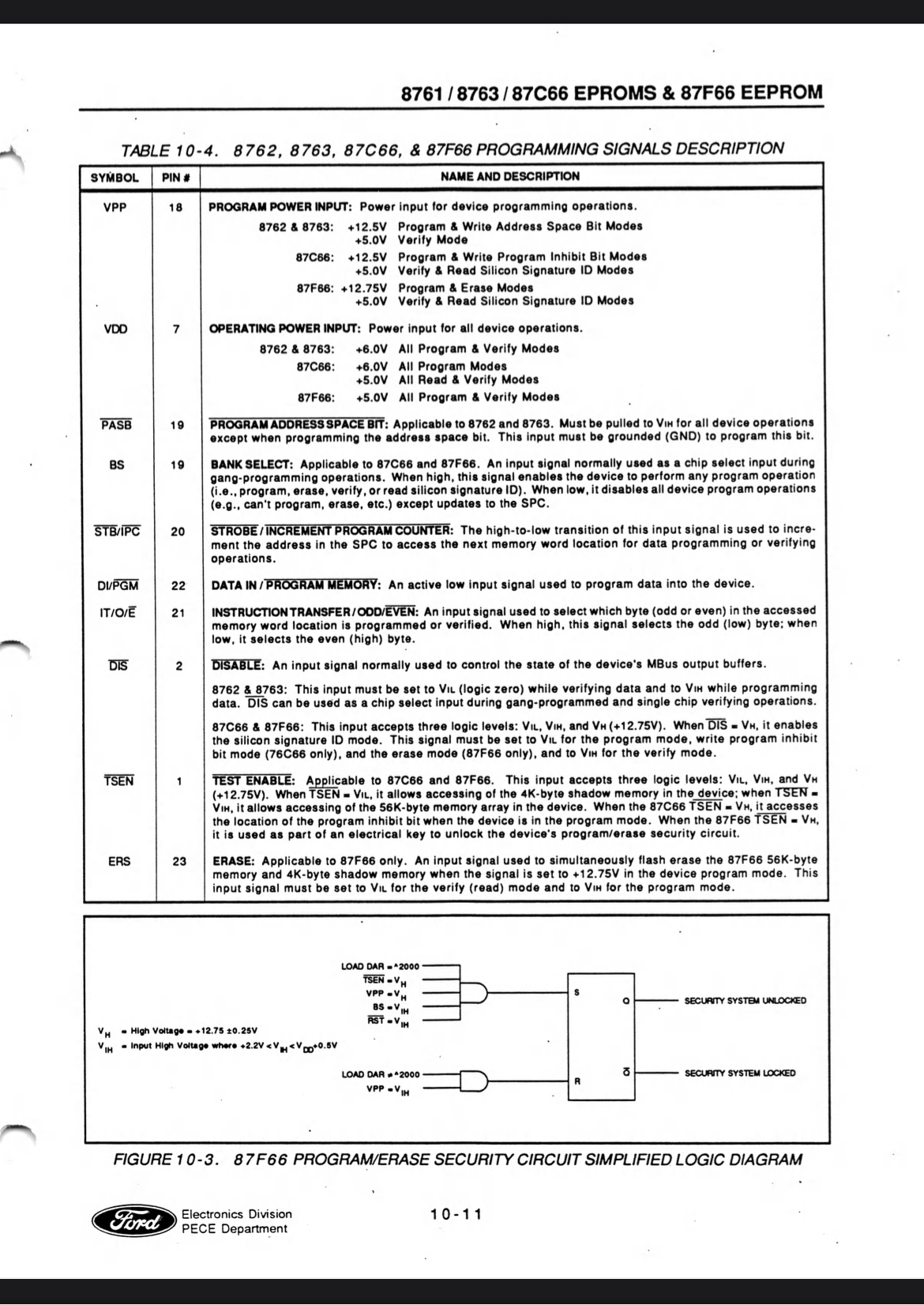 I follow that youtuber, The software he uses looks like the programmer has configurable pins. That is what would be needed to program a stock Ford EEPROM. The programming/write pin that takes 12-15V is on the middle of the chip, pin 18 or something. Most EEPROMS its on the beginning or end of chip pins, like 0/1 or 23/24 or 27/28, something like that.