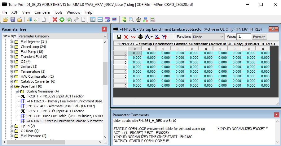 didn't find the startup enrichment subtractor table for XDT2. Because it is written to control the 5.0, I considered copying the data somehow and use it in the 99CV YYA2 graph? Also the snip it pic below is from the Explorer file and was curious if some info could be gleaned from it?