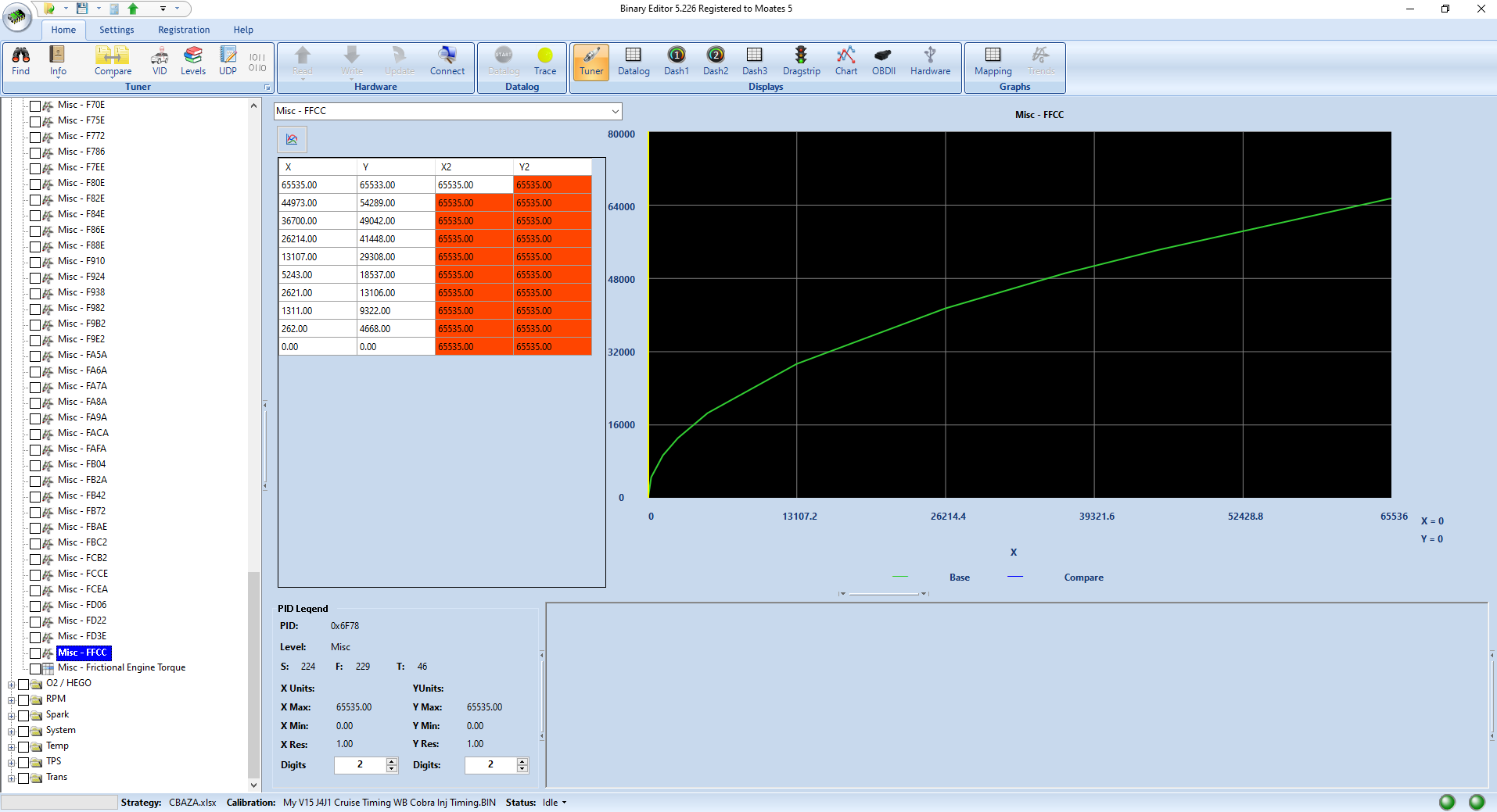 I just went through and adjusted every scalar, table, function and entry manually, in a new, clean, J4J1.bin. I compared the two tune files after manually correcting that Misc - FFCC in the file that needed repair. The two matched when I was done and nothing was out of the ordinary. The only thing to do now is to test the theory or getting a bad file upon reading the chip. I'll check that later.
