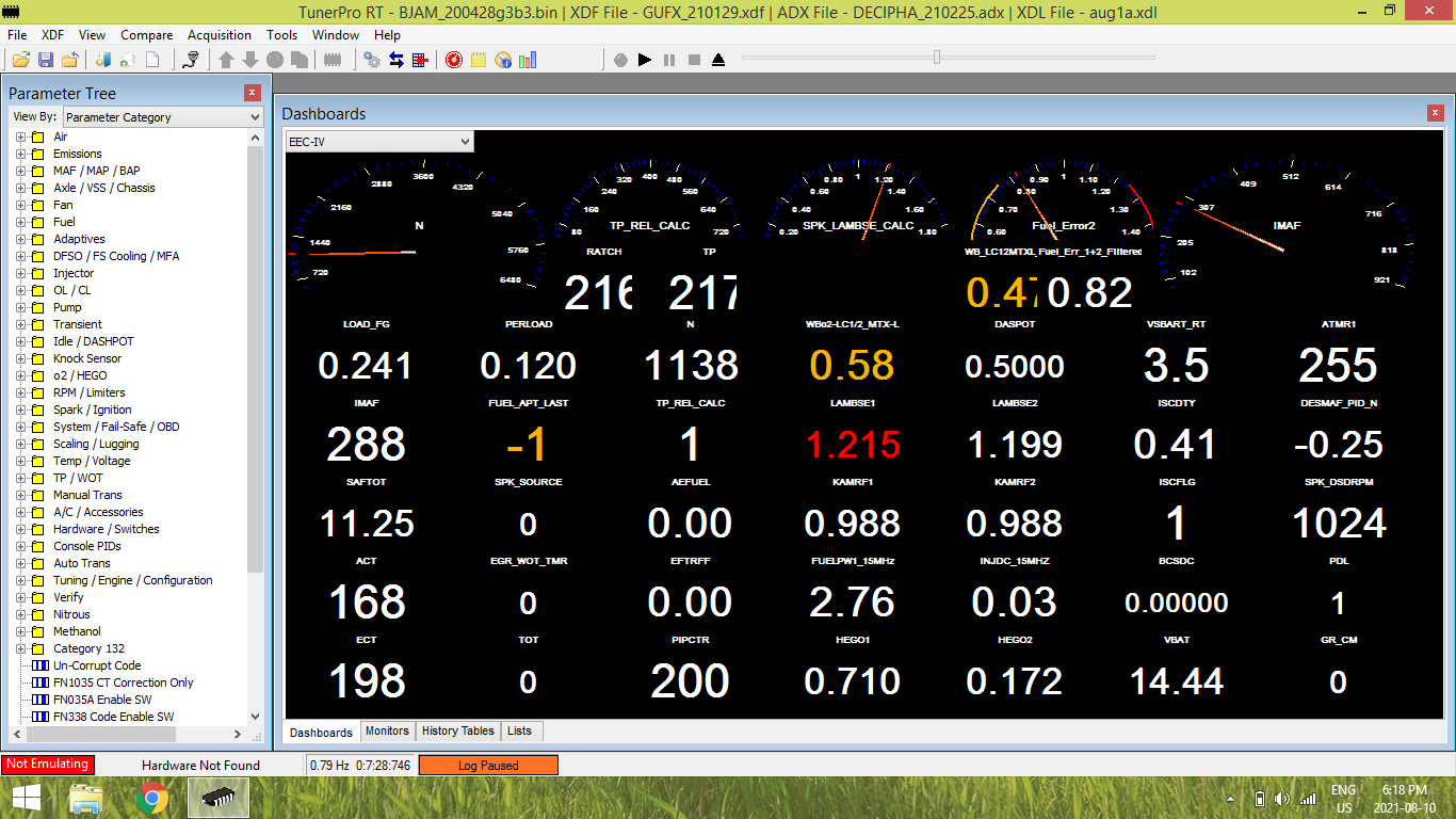 Also, going back to fuelling, here are a couple of screen shots. One shows KAMRF in the .700's. So, if I understand this right, I'm in closed loop, so HEGO's are monitoring the AFR in the exhaust pipe, the ECU is asking for a LAMBSE of whatever is entered in the MAF table(yes?) and the KAMRF’s are making the correction to reach the targeted LAMBSE. Is that right?