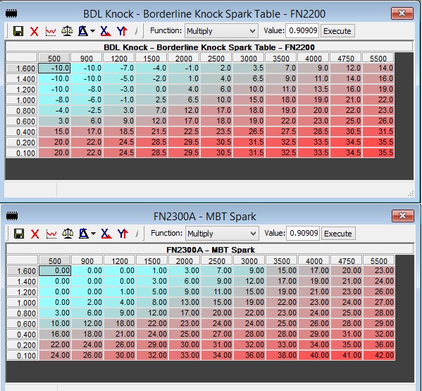I'm looking at the MGZT tables, and they're quite different from my old BAI1. MBT is up to 13* less advanced, Borderline Knock is 6-12* more advanced over much of the 1.0 load range... I like the look of the MGZT table, and it is scaled up to 1.6 load right off the bat which is a bonus. I'm just trying to understand if the timing table differences are on account of the PI heads and cams versus the NPI stuff, or if the strategies use different modifiers to arrive at final spark based on these tables. Or is there some much deeper gap in my understanding of spark advance that I'm not even aware of.