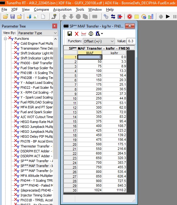 The reason my table is inverted is because that's how the MAF table shows in the A9L2_220405.bin file which is where I started.